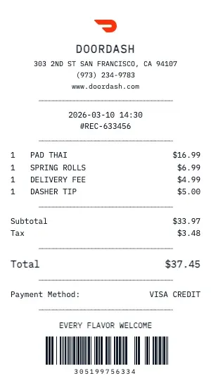 Every detail matters. Here\u2019s what a genuine DoorDash receipt includes \u2014 and how our generator replicates each element.