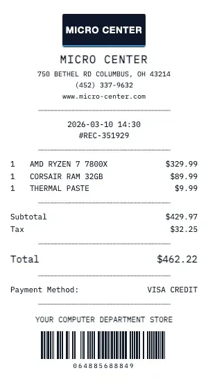 How to Generate a Micro Center Receipt