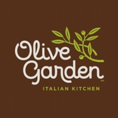 The Olive Garden template is pre-loaded with the correct logo, address format, and column layout.