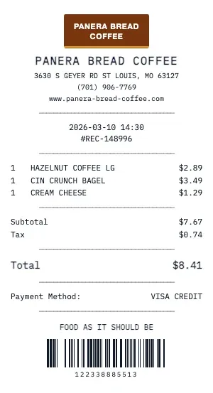 Every detail matters. Here\u2019s what a genuine Panera Bread Coffee receipt includes \u2014 and how our generator replicates each element.