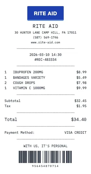 Every detail matters. Here\u2019s what a genuine Rite Aid receipt includes \u2014 and how our generator replicates each element.