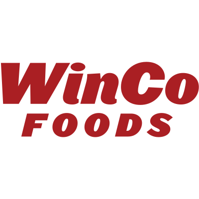 The WinCo Foods template is pre-loaded with the correct logo, address format, and column layout.